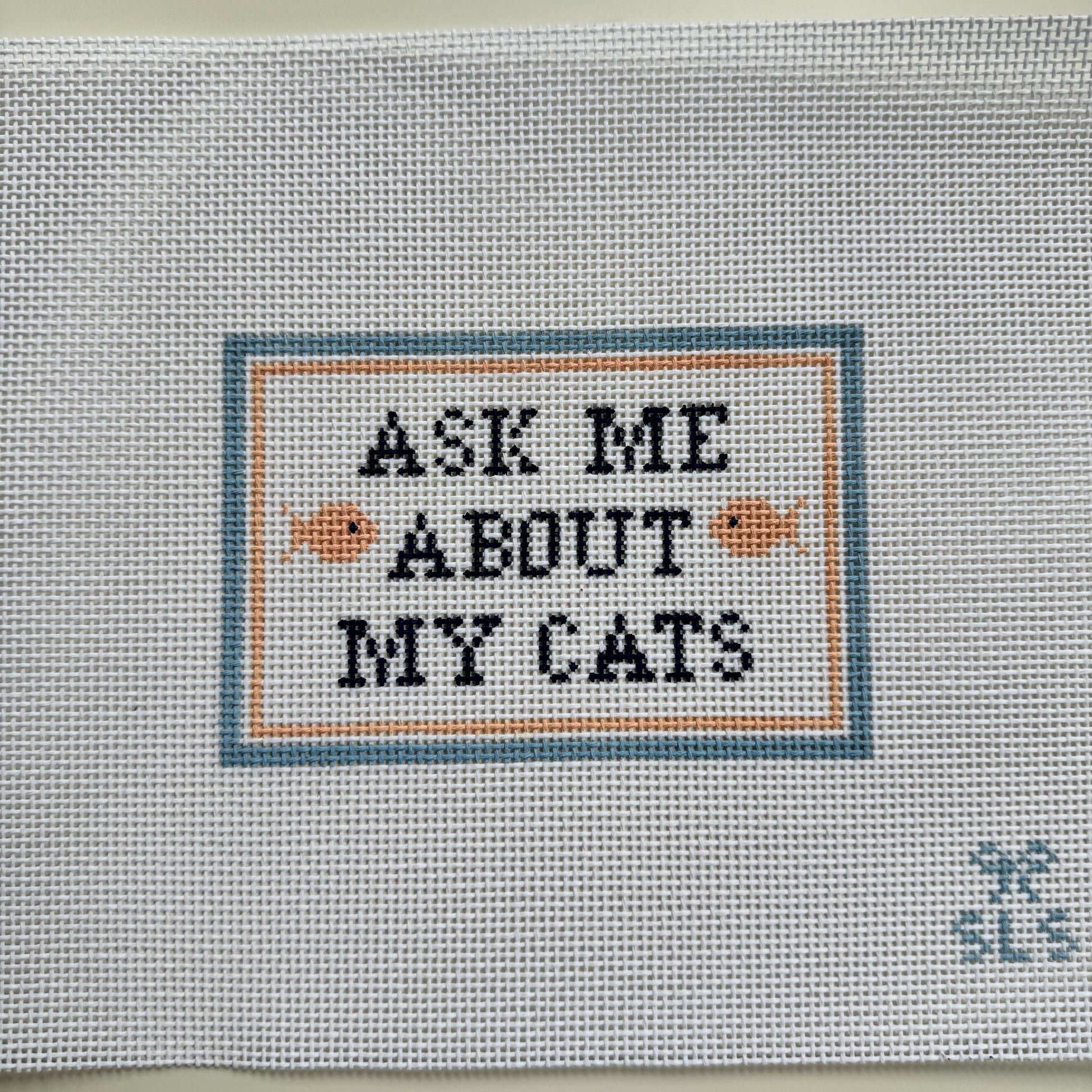 The design area measures approximately 5” w x 3.25” h on 13 m. Hand painted and stitch painted needlepoint canvas.