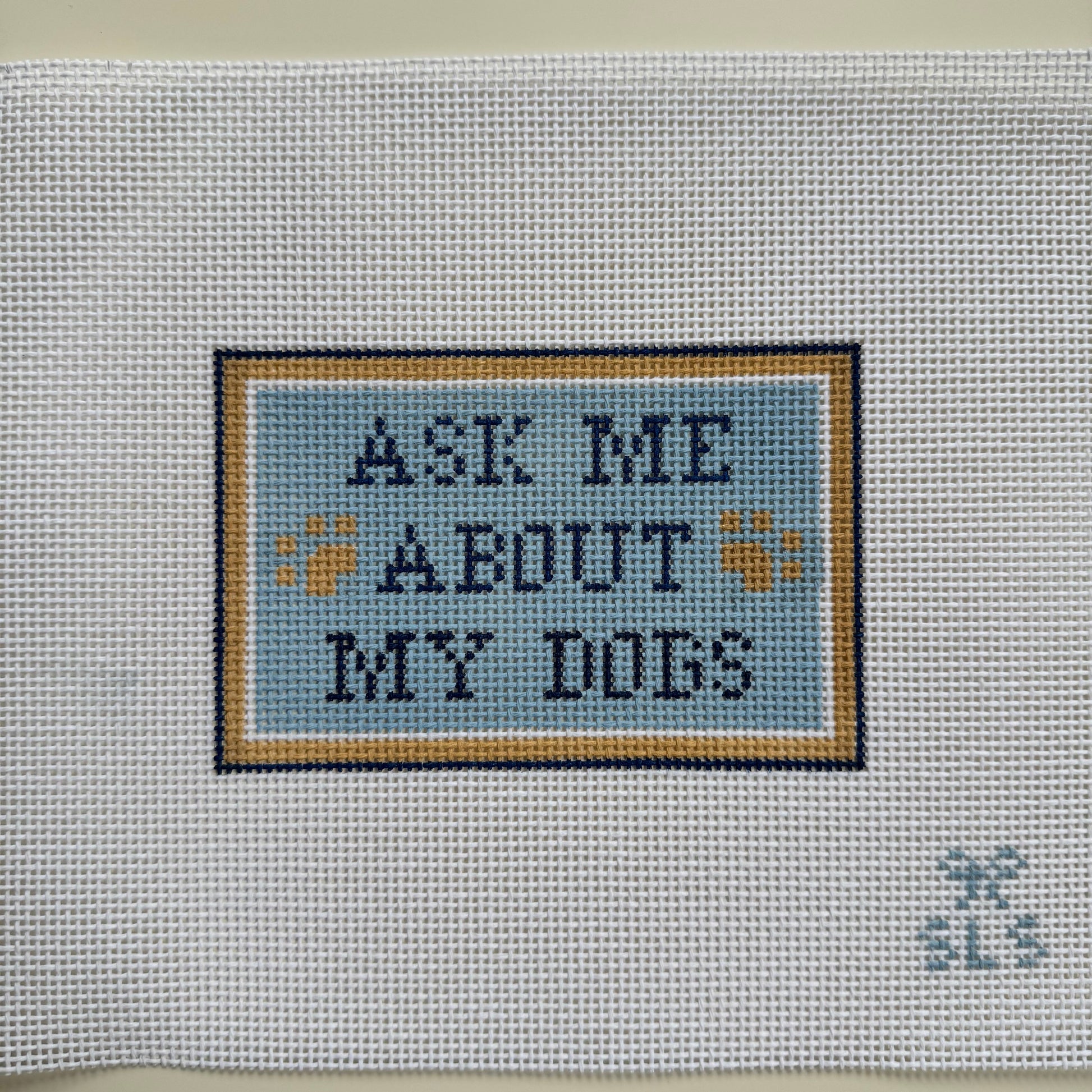 The design area measures approximately 5” w x 3.25” h on 13 m. Hand painted and stitch painted needlepoint canvas.