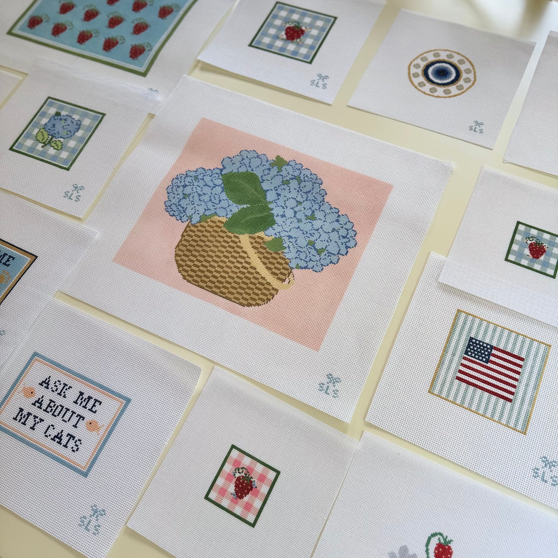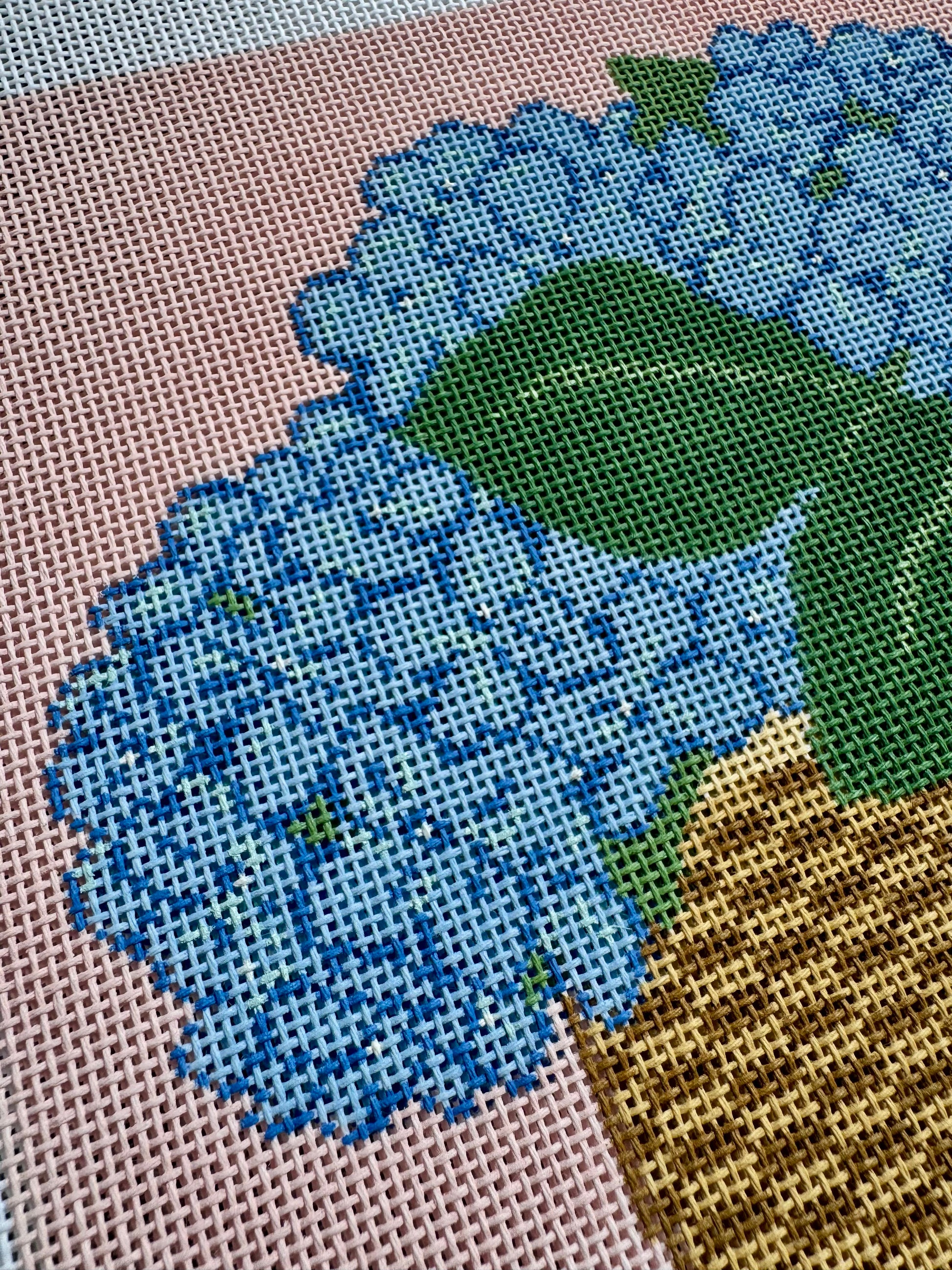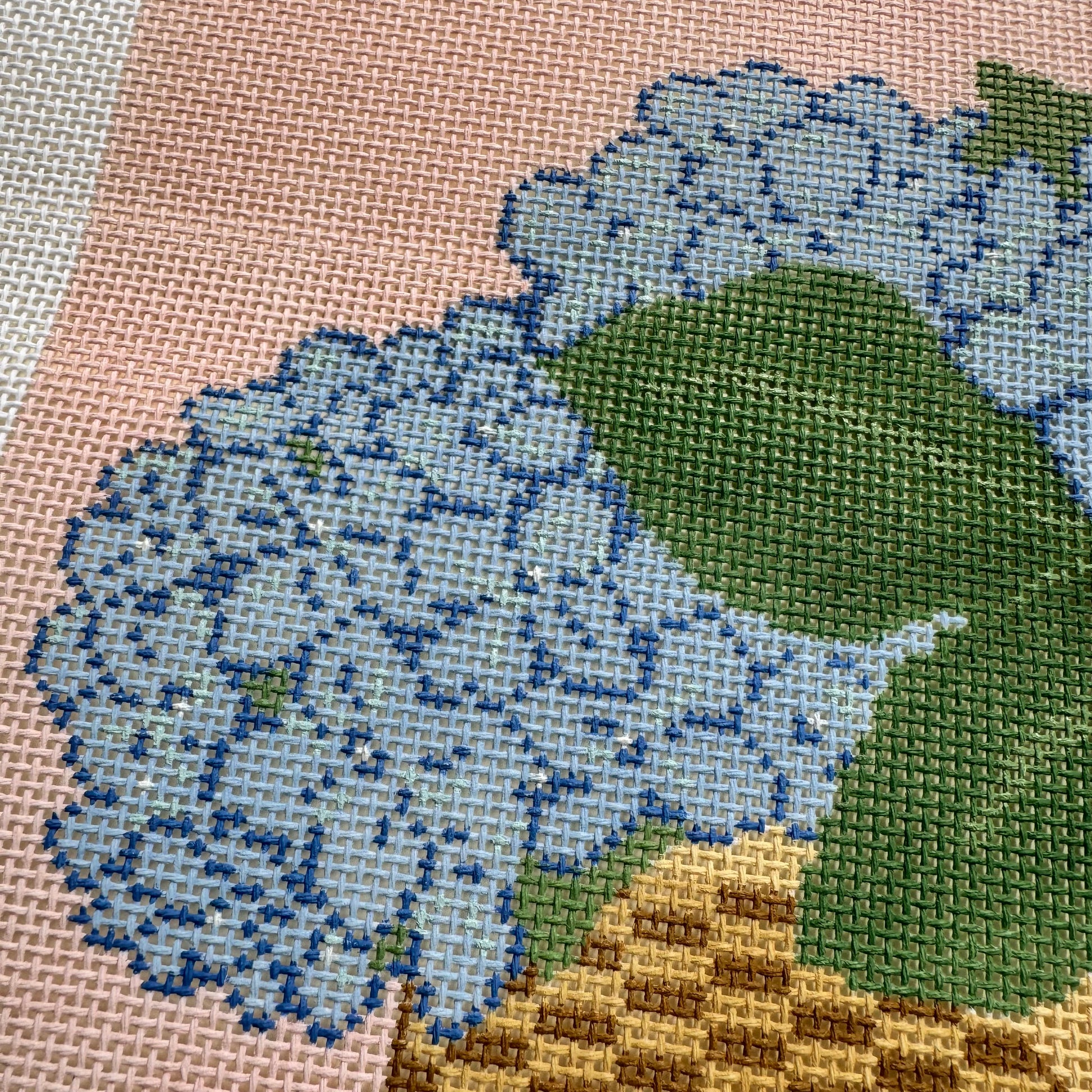 10.7" x 9.3". Hand painted and stitch painted on 14 mesh.