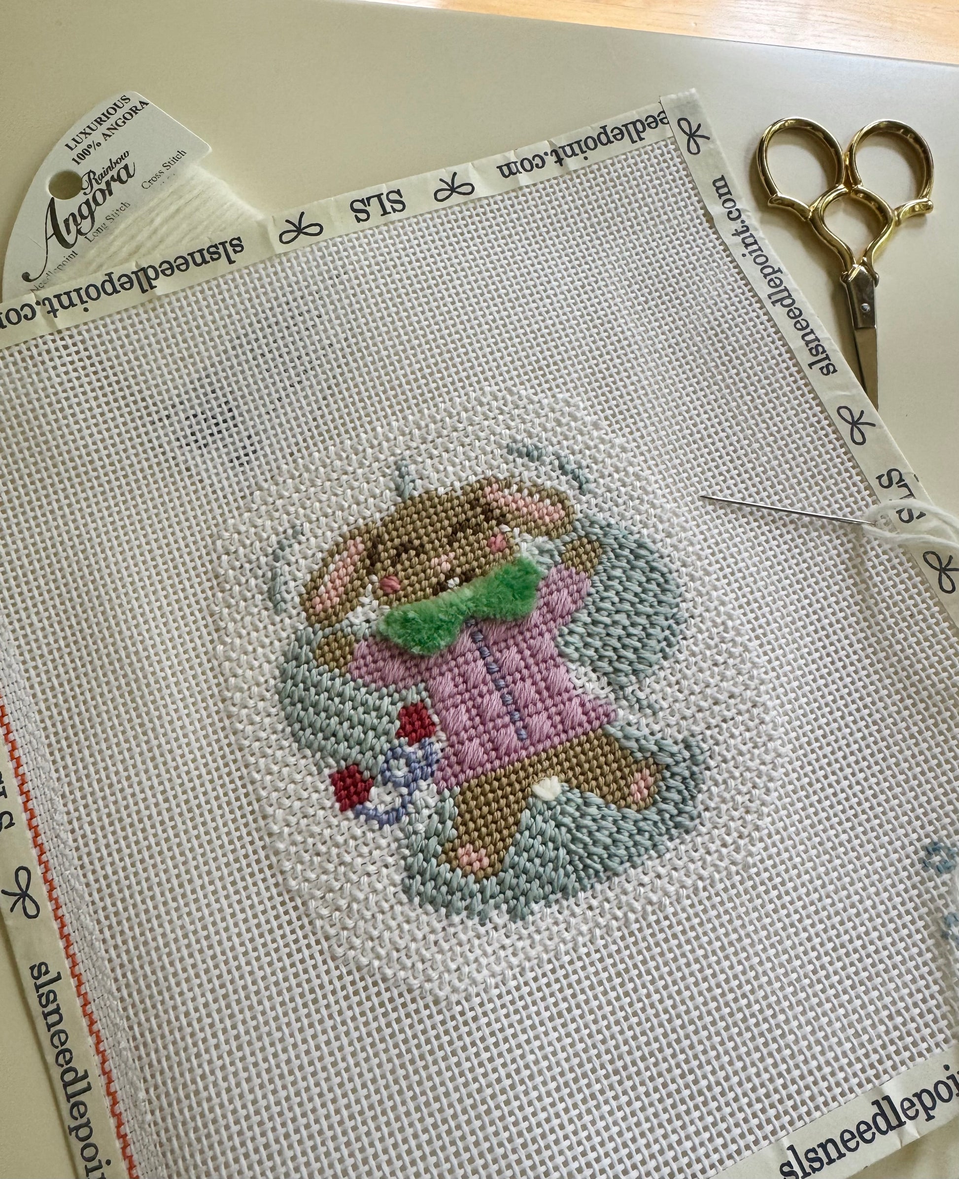 Rabbit needlepoint ornament, needlepoint ornament, bunny needlepoint