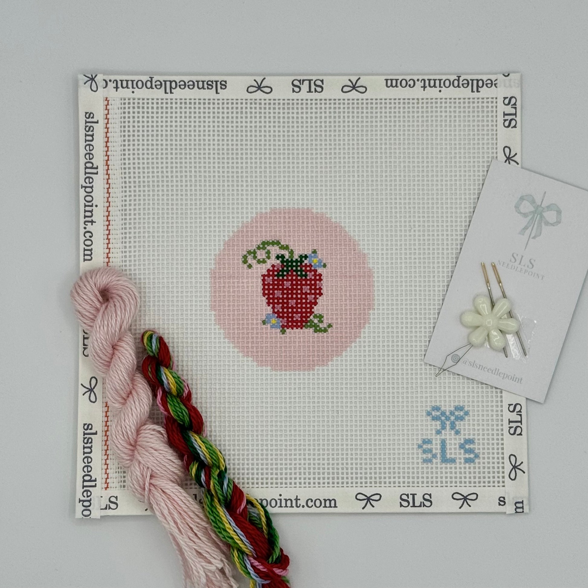 Strawberry Needlepoint canvas ornament, needlepoint bag charm, needlepoint mini, needlepoint kit, needlepoint beginner kit